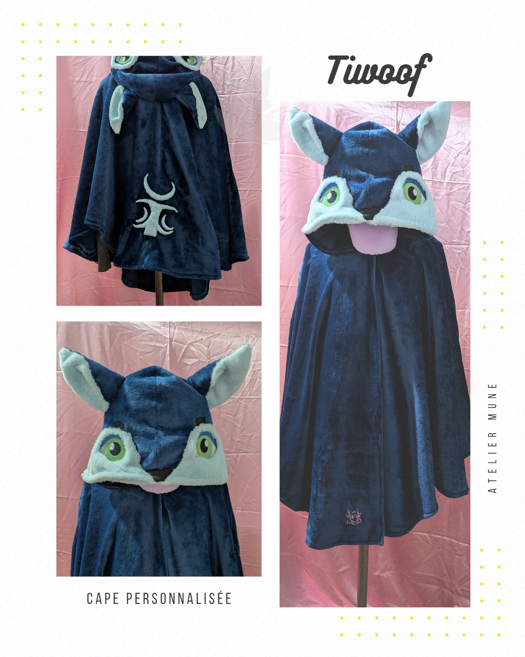 Cape en polaire, la capuche est personnalisable avec le référence de votre fursona.